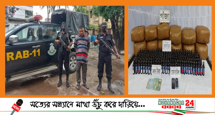 র‍্যাব-১১, সিপিসি-২ কর্তৃক কুমিল্লা জেলার কোতয়ালী মডেল থানার জগন্নাথপুর এলাকা হতে ৩০ কেজি গাঁজা এবং ১৯৮ বোতল ফেন্সিডিলসহ একজন মাদক মাদক কারবারি গ্রেফতার।