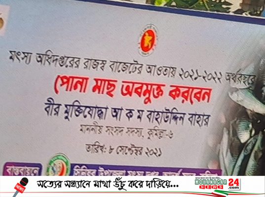 মৎস্য দপ্তরের বাস্তবায়নে মৎস্য অধিদপ্তরের রাজস্ব বাজেটের আওতায় ২০২১-২০২২ অর্থবছরে দুপুর-১২টা মুন্সেফবাড়ী পুকুরে পোনা মাছ অবমুক্ত করবেন।