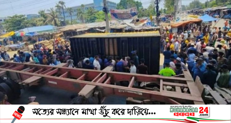 চলন্ত লরি থেকে কন্টেইনার পড়ে নিহত দুইজন