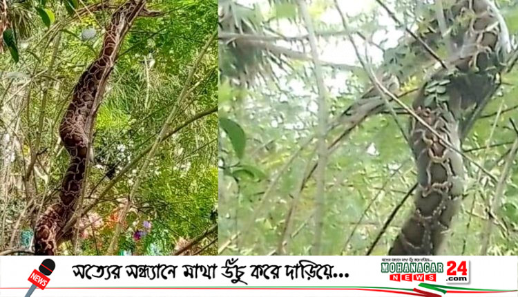 চাঁদপুরে পুকুর থেকে বৃহৎ অজগর সাপ উদ্ধার করলো জনতা