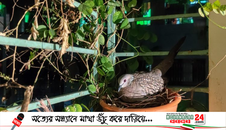 আজকের ফটো গ্যালারী ঘুঘু পাখি দেখুন কিভাবে বারান্দায় ডিম নিয়ে বসে আছে।