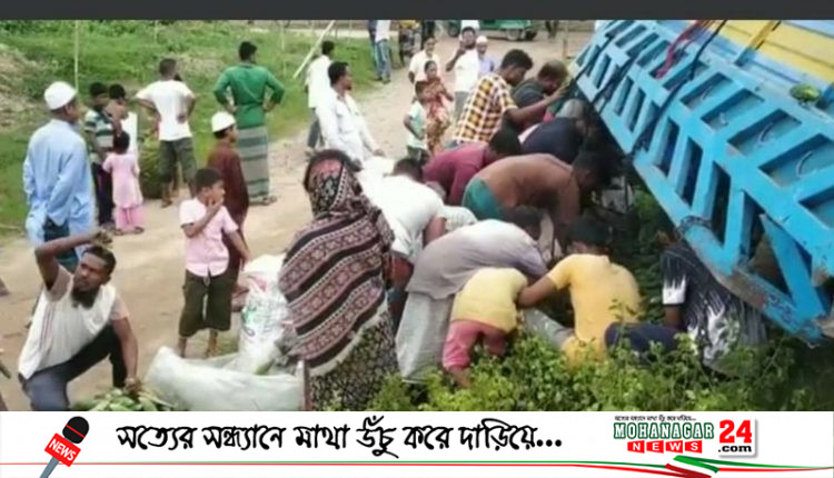 রেললাইনের পাশে উল্টে পড়ে আছে মিনি ট্রাক, রাস্তায় ছড়িয়ে পড়েছে করলা ও চিচিঙ্গা। যে যেভাবে পারছে কুড়িয়ে নিচ্ছে সেসব সবজি। কেউ বস্তায়, কেউ পলিথিনে, কেউ আবার লুঙ্গির কাছা বা শাড়ির আঁচল ভরে সবজি নিয়ে ছুটছেন বাড়িতে।