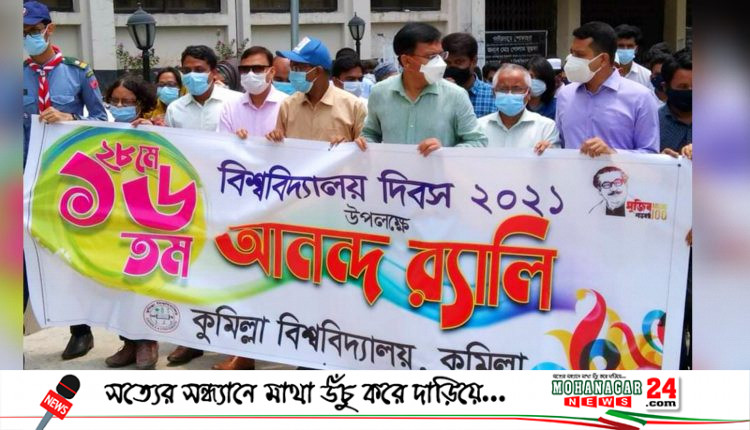 সোমবার সকালে বর্ণাঢ্য শোভাযাত্রা, কেক কাটা ও আলোচনা সভার মধ্যে দিয়ে কুমিল্লা বিশ্ববিদ্যালয়ের ১৫তম প্রতিষ্ঠাবার্ষিকী ও ১৬তম বিশ্ববিদ্যালয় দিবস পালন করা হয়।