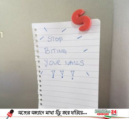 ঘরের বিভিন্ন জায়গায় ‘নখ কামড়ানো যাবে না’ লেখা নোটিশ টানিয়ে রাখুন, যেন বারবার সেগুলোর উপর আপনার চোখ পড়ে। মোবাইল ও ল্যাপটপের ওয়ালপেপারও পরিবর্তন করে নিতে পারেন এই নোটিশ লিখে।