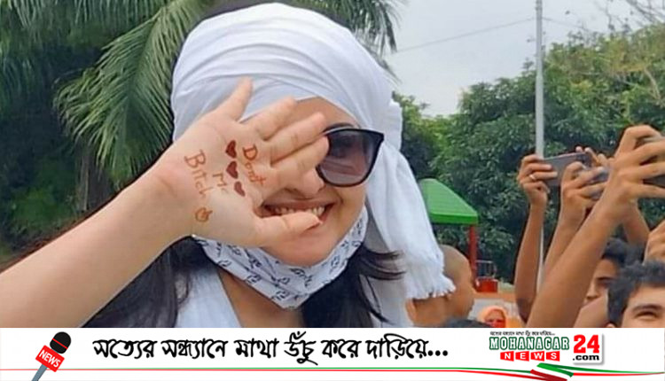 পরীমনির ডান হাতে মেহেদি দিয়ে লেখা ছিল, ‘ডোন্ট লাভ মি বিচ’। শয়তানদের দূরে থাকার কথা বলছেন পরীমনি! কারাগার থেকে বেরিয়ে এমন বার্তাই দেওয়ার চেষ্টা করেছেন ঢালিউডের এ নায়িকা।