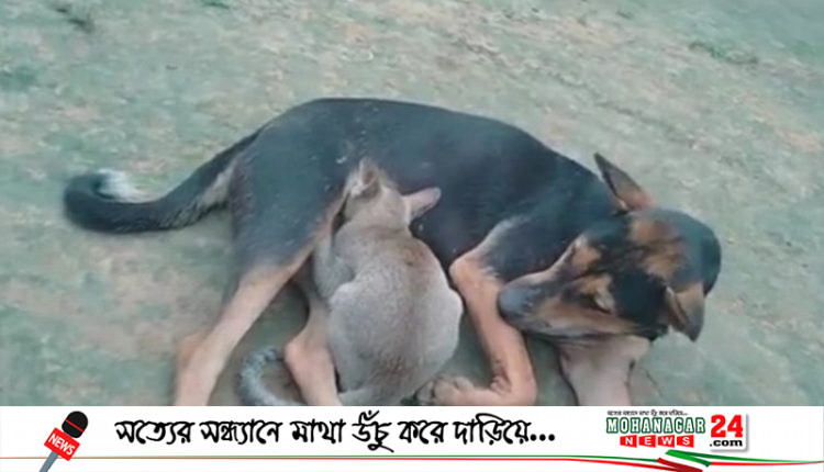 কুকুরের দুধ খেয়ে বড় হচ্ছে বিড়ালের বাচ্চা!