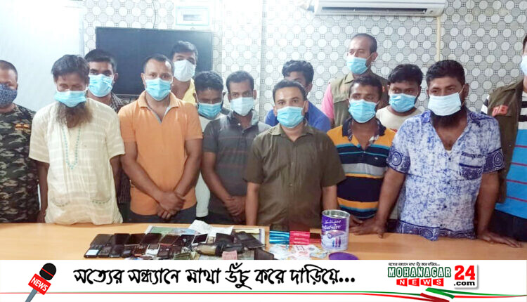 আটককৃতরা হলো মোঃ দুলাল (৫০), আক্তার হোসেন (৪৫), মোঃ মাসুদ রানা (৪০), এরশাদ আলী (৩০), মোঃ রানা(৩৫), মোঃ রাসেল মিয়া (৩০), রওশন আলী (৪৫), ইব্রাহিম খলিল (৩০), মোঃ সুমন মিয়া (৩০), মোঃ ইকবাল হোসেন স্বপন (৩৭), মোঃ রুবেল মিয়া (২৫) এবং জুয়ার আসর পরিচালনাকারি মোঃ শাকিল হোসেন (৩৩)।