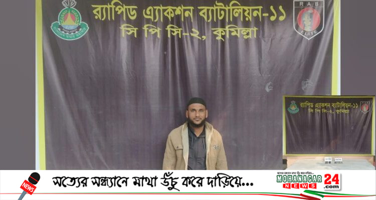 কুমিল্লা নাঙ্গলকোটে আলোচিত গণধর্ষনের ঘটনায় জড়িত একজন আসামীকে গ্রেফতার করেছে র্যাব-১১, সিপিসি-২।
