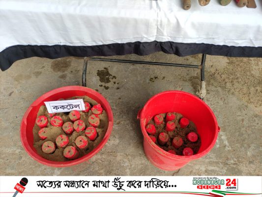শনিবার উপজেলার পাঁচথুবী ইউনিয়নের গোলাবাড়ী গ্রামে আধাপাকা একটি বাড়িটিতে অভিযান চালিয়ে এই ককটেল উদ্ধার করা হয়।