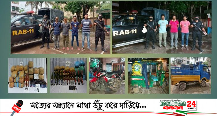 পৃথক চারটি অভিযানে র্যাব-১১, সিপিসি-২ কর্তৃক কুমিল্লা জেলার চৌদ্দগ্রাম এবং কোতয়ালী মডেল থানা এলাকা হতে ১০৯ কেজি গাঁজা, ৮০ বোতল ফেন্সিডিল, ২৩ বোতল বিয়ার এবং ০৯ বোতল বিদেশী মদসহ সাতজন মাদক মাদক কারবারি গ্রেফতার। ০১টি পিকআপ, ০১টি সিএনজি এবং ০১টি মটর সাইকেল জব্দ।