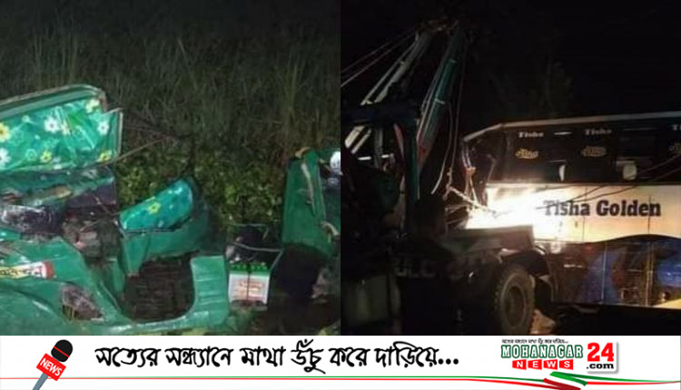 বুড়িচংয়ের দেবপুর পুলিশ ফাঁড়ির সহকারী উপপরিদর্শক (এএসআই) জহিরুল ইসলাম জানান, সিলেটগামী তিশা গোল্ডেন পরিবহনের একটি বাস অটোরিকশাকে চাপা দেয়ার পর গাছের সঙ্গে ধাক্কা লাগে।