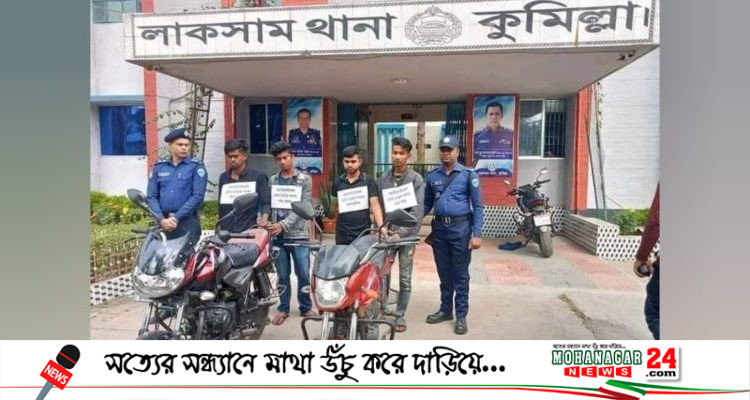 কুমিল্লার লাকসামে চোরাই মোটরসাইকেলসহ ৪ চোর আটক