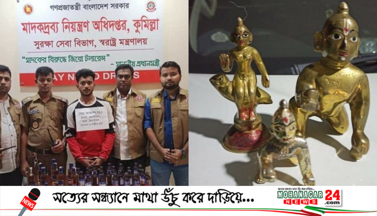 কুমিল্লা মাদকদ্রব্য নিয়ন্ত্রণ অধিদপ্তর এর উদ্যোগে ১লা নভেম্বর রাত ৮টায় কুমিল্লা জেলা প্রশাসনের বিজ্ঞ নির্বাহী ম্যাজিস্ট্রেট অমিত দত্ত নেতৃত্বে মাদকবিরোধী অভিযান পরিচালনা করে ১১৩০ পিস ইয়াবা, ২৯ বোতল ফেনসিডিল, ৮ বোতল বিলাতীমদ ও ৩টি মূর্তিসহ (গোপালের ১টি,লক্ষ্মী ২টি) আসামী মোঃ আকাশ(২১), পিতা বাবলু মিয়া, নূরপুর উত্তরপাড়া, মুরগি বাড়ীর পাশে, থানা কোতয়ালী আসামীকে আটক করা হয়।