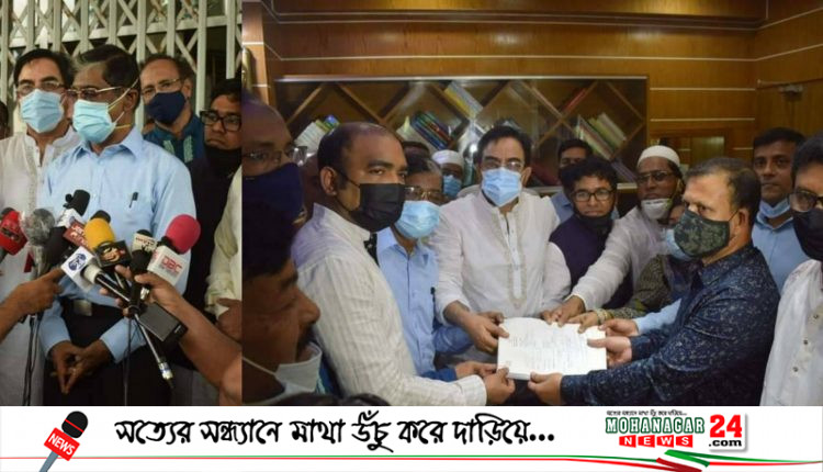 কুমিল্লায় উপনির্বাচনে মনোনয়নপত্র জমা দিলেন অধ্যাপক প্রাণ গোপাল দত্ত।