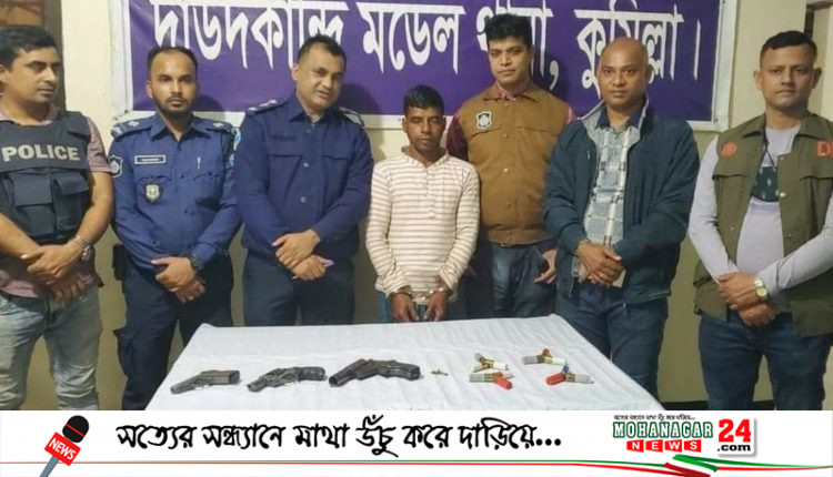 কুমিল্লায় ৩টি অস্ত্র ও গুলি সহ আটক ১