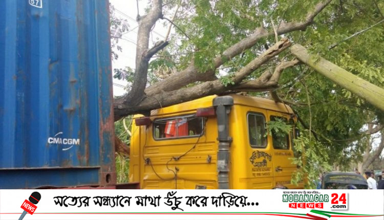 কুমিল্লা তিতাসে কন্টেইনারের ধাক্কায় উপড়ে পড়লো গাছ
