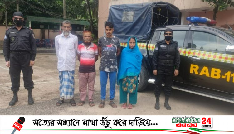 আটককৃতরা হলেন, অরণ্যপুর গ্রামের মোঃ আব্দুল ওহাবের ছেলে মোঃ মিজানুর রহমান (৩২) ও তার স্ত্রী সুরাইয়া আক্তার (২২), একই গ্রামের মৃত কাজী ফজর আলীর ছেলে মোঃ আব্দুল মালেক (৫২) এবং রাজমঙ্গলপুর গ্রামের মোঃ আব্দুল আলীর ছেলে মোঃ খোরশেদ আলম (৪৭)।