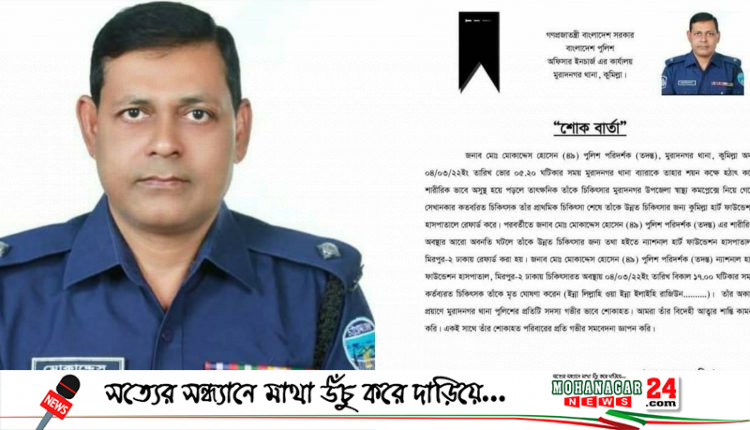 কুমিল্লা মুরাদনগরে হৃদরোগে আক্রান্ত হয়ে পুলিশ কর্মকর্তার মৃত্যু
