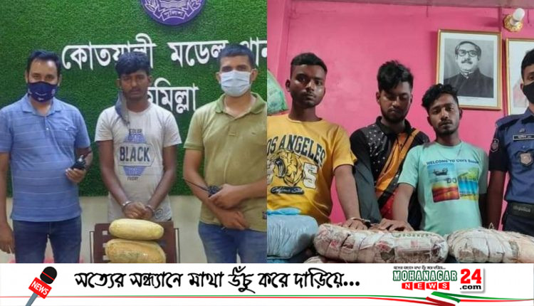 কুমিল্লা কোতয়ালী মডেল থানা পুলিশের অভিযানে গাজাসহ আটক ৪