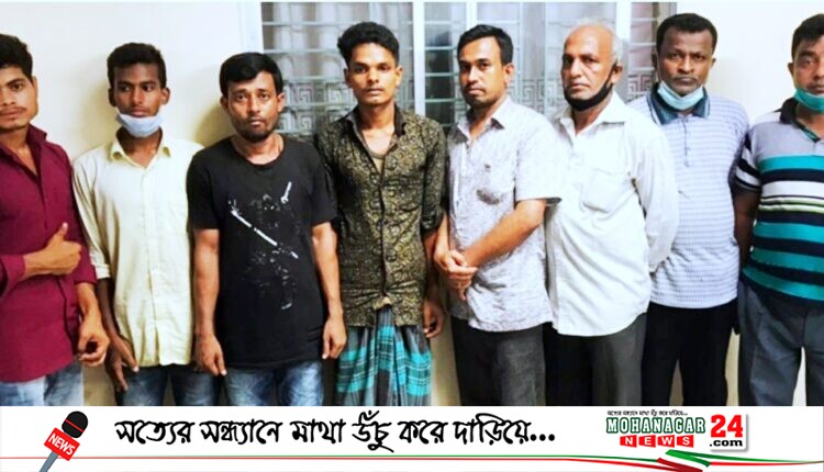 আটকরা হলেন- মো. বেলাল (৩৬), আবুল কালাম (৩২), মো. সেলিম (৩৯), মো. তাজুল ইসলাম (৪৫), মো. রাজিব (৩২), মো. মোবিনুল ইসলাম (২৩), মো. আহাদ (১৯) ও মো. ইসমাঈল (২২)।