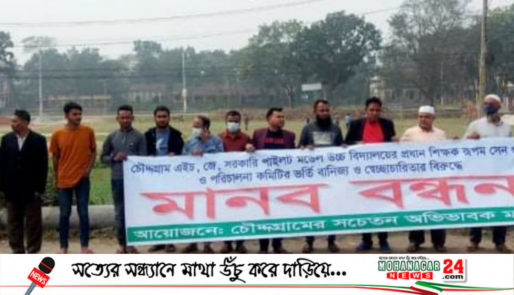 চৌদ্দগ্রামে সরকারী স্কুলে ভর্তি বাণিজ্যের অভিযোগে মানববন্ধন