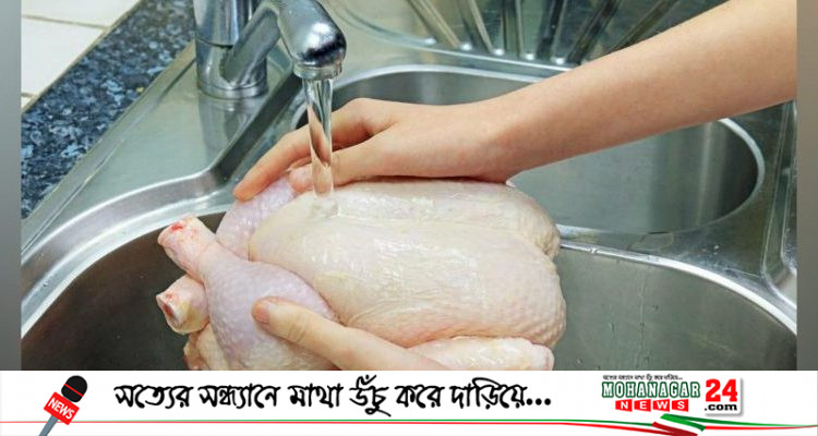 রান্নার আগে রান্নাঘরে মুরগির মাংস ধুতে গেলে উল্টে মাংস থেকে জীবাণু ছড়িয়ে পড়তে পারে অন্যান্য বাসনপত্র ও শরীরে। সেখান থেকে তা অন্যান্য খাবারে ছড়িয়ে পড়লে দেখা দিতে পারে একাধিক রোগ।