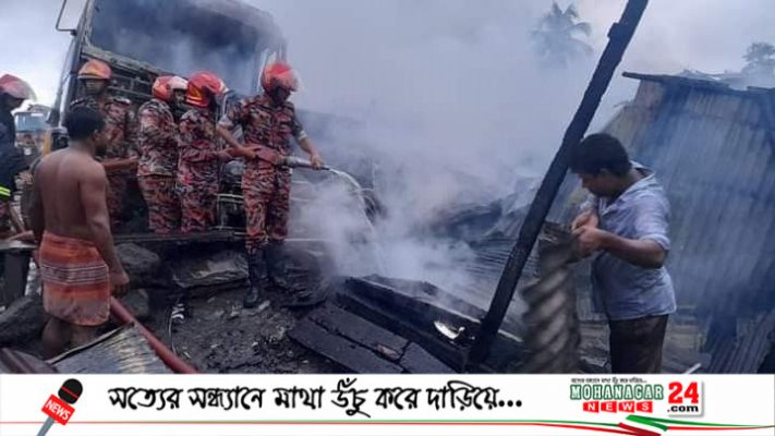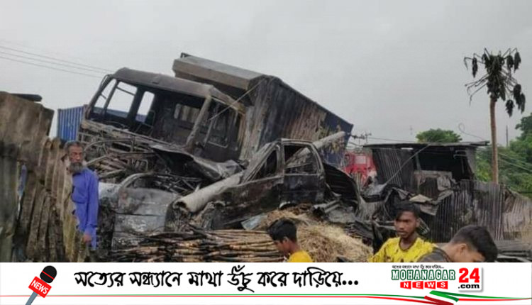 দাউদকান্দিতে গাড়ির ধাক্কায় বৈদ্যুতিক খুঁটি ভেঙ্গে অগ্নিকাণ্ডে ৪গাড়িসহ ৬ দোকান ভস্মীভূত