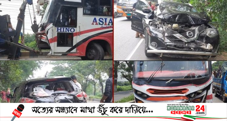 এমন সময় প্রাইভেট কারটির সামনে ও পেছনে যাত্রীবাহী দুটি চলন্ত বাস এসে ধাক্কা দেয়। সংঘর্ষের ঘটনায় প্রাইভেট কারটি দুমড়েমুচড়ে যায় এবং যাত্রীবাহী বাস দুটিরও ক্ষয়ক্ষতি হয়।