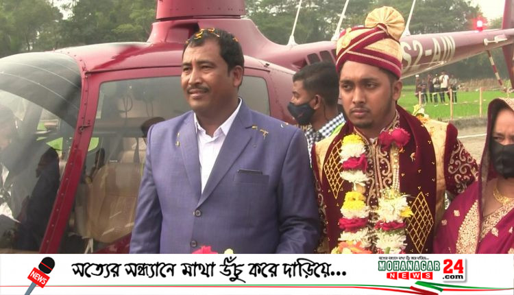 নিজের শখ পূরণে রাজধানী ঢাকা থেকে তিন লাখ ৫০ হাজার টাকায় একটি হেলিকপ্টার ভাড়া করেন তিনি। হেলিকপ্টারে চড়েই ছেলে বিয়ে করেছেন।