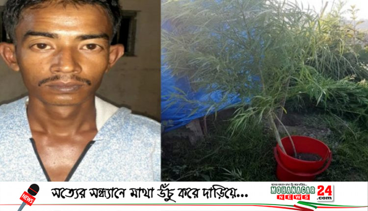 বাড়ির আঙ্গিনায় গাঁজা চাষ করে ধরা খেল যুবক