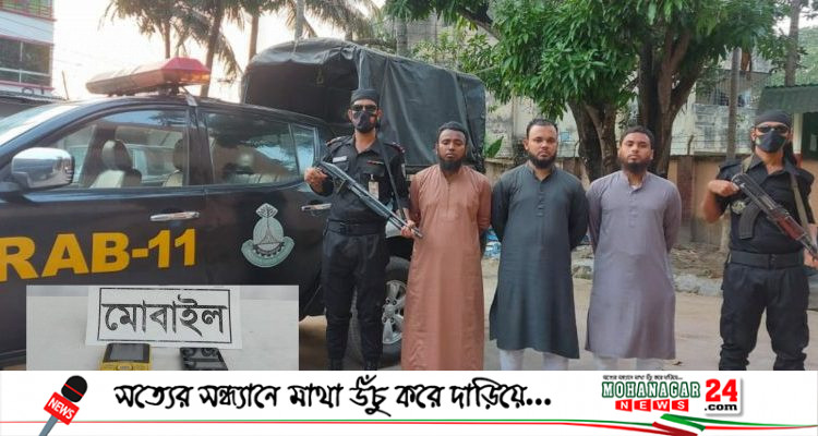 র‍্যাব-১১, সিপিসি-২ কর্তৃক বিদেশ গমণের টাকা যোগাতে বাবার সাথে প্রতারণা ও অপহরণের অভিনয় করার অপরাধে তিনজন গ্রেফতার।