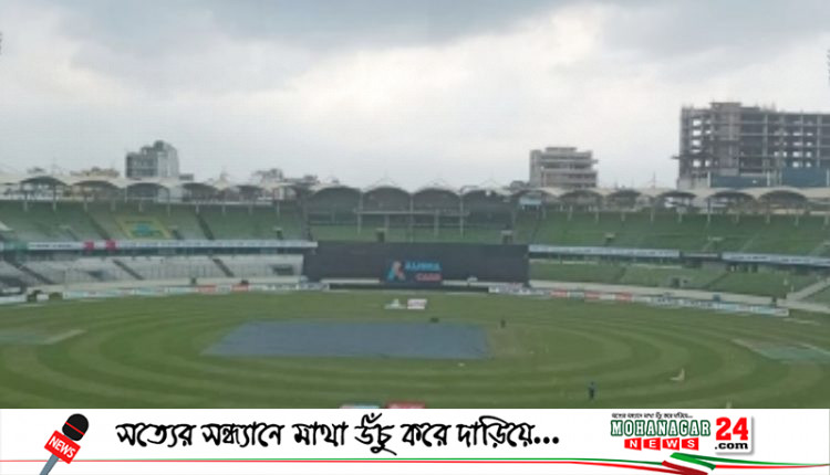 এই রোদ এই বৃষ্টি। ম্যাচ শুরুর এখনও দেড় ঘণ্টার মতো বাকি। সন্ধ্যা ৬টায় শুরু হবে বাংলাদেশ-অস্ট্রেলিয়ার মধ্যকার তৃতীয় ম্যাচ। তার আগে পিচ ঢেকে দেয়া হয়েছে কাভারে।
