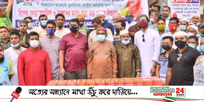 ১৭ মে বঙ্গবন্ধু কন্যা সফল রাষ্ট্রনায়ক শেখ হাসিনা’র স্বদেশ প্রত্যাবর্তন দিবস ও চার দশক পূর্তি উপলক্ষে কুমিল্লা সদর আসনের মাননীয় সংসদ সদস্য ও মহানগর আওয়ামীলীগের সংগ্রামী সভাপতি বীরমুক্তিযোদ্ধা আ.ক.ম বাহাউদ্দিন বাহার ভাইয়ের নির্দেশে বাংলাদেশ আওয়ামী যুবলীগের চেয়ারম্যান শেখ ফজলে শামস পরশ ও সাধারণ সম্পাদক আলহাজ্ব মাইনুল হােসেন খান নিখিলের আহবানে যুবলীগের কেন্দ্রীয় কর্মসূচীর আলোকে কুমিল্লা মহানগর আওয়ামী যুবলীগের উদ্যাগে সোমবার দুপুর-২টায় কান্দিরপাড় কেন্দ্রীয় জামে মসজিদে বিশেষ দোয়া মাহফিল পরে দুস্থ মানুষদের মাঝে রান্না করা খাবার, বস্ত্র বিতরণ করা হয়।উক্ত বিশেষ দোয়া ও মাহফিলে উপস্থিত ছিলেন কুমিল্লা মহানগর আওয়ামী যুবলীগের আহ্বায়ক ও জেলা পরিষদের প্যালেল চেয়ারম্যান আবদুল্লা আল মাহমুদ সহিদ।কুমিল্লা মহানগর আওয়ামী যুবলীগের সদস্য কাজী শাহআলম,হান্নানুর রহমান বেলাল, নাজমুল ইসলাম শাওন, আকাশ ওয়াহিদ।ইতালি আওয়ামী যুবলীগের কার্যনির্বাহী সদস্য মোহাম্মদ গিয়াসউদ্দিন হাসান সহ যুবলীগের অন্যান্য নেতৃবৃন্দ।