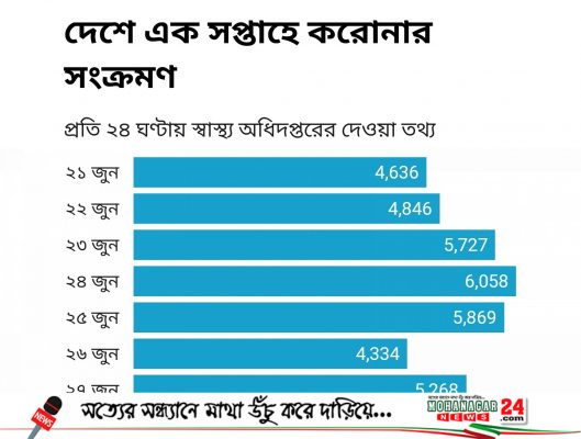 ১ জুন যেখানে আগের ২৪ ঘণ্টায় ৪১ জনের মৃত্যু ও ১ হাজার ৭৬৫ জনের করোনা শনাক্ত হয়, সেখানে গত শুক্রবার সকাল ৮টা পর্যন্ত ২৪ ঘণ্টায় ১০৮ জনের মৃত্যু ও ৫ হাজার ৮৬৯ জন রোগী শনাক্ত হয়।