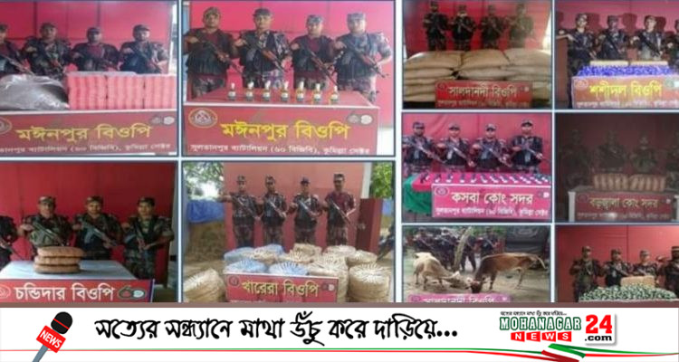 ৬০ বিজিবির দায়িত্বপূর্ণ এলাকায় গত দুই দিনে ৪০ লাখ ৬৮ হাজার টাকার মালামাল জব্দ